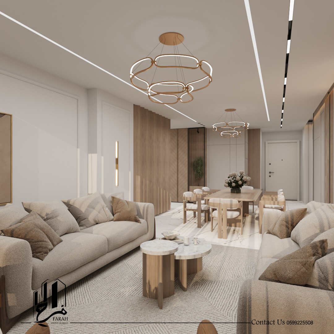 في هذا المشروع، كان الهدف تطوير تصميم داخلي لشقة بمساحة 150 مترًا مربعًا في كفر عقب، بأسلوب دافئ على الطراز الحديث. كان المطلوب خلق مساحة متوازنة تجمع بين الراحة والأناقة والعملية، مع الاستفادة من المساحة بشكل مدروس يعكس أسلوب الحياة اليومي لأصحاب المنزل.