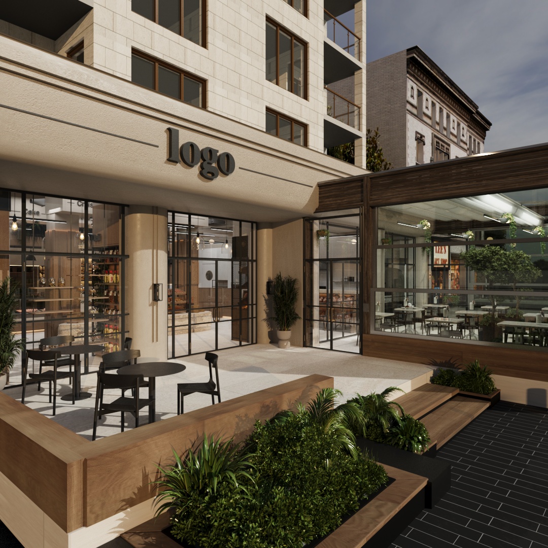 A 250 sqm bakery design in Ramallah that combines a strong commercial façade, summer and winter outdoor seating, and well-planned display and production areas within a warm contemporary identity.