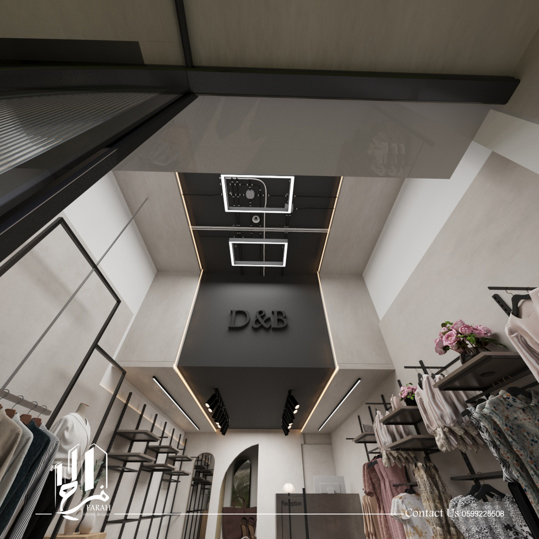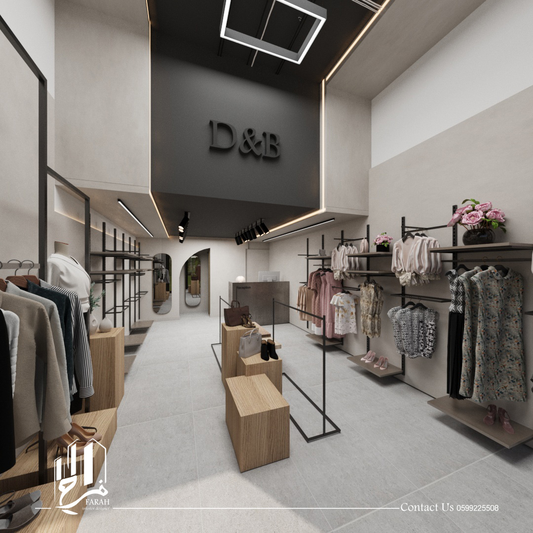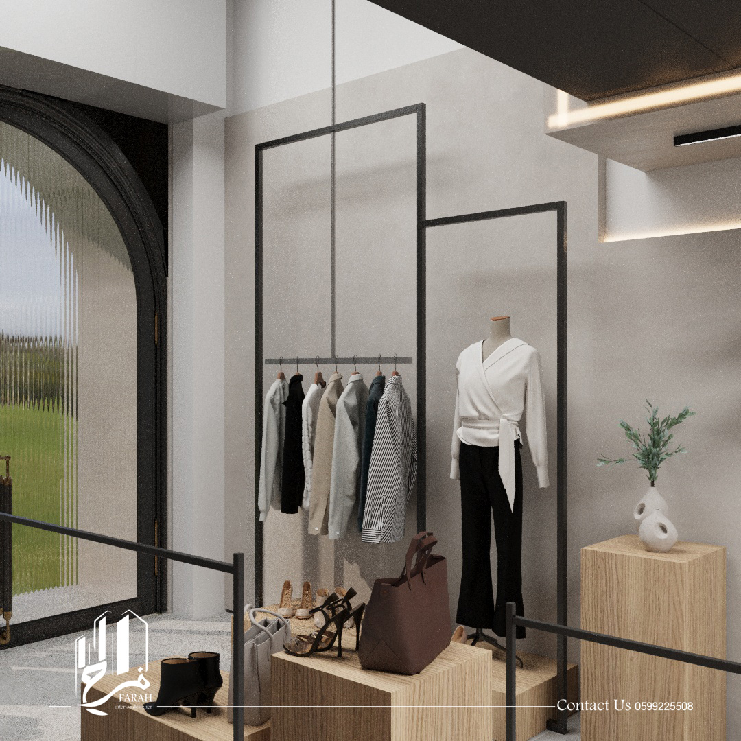 A women’s fashion store design in Ramallah with an area of 50 sqm, featuring a modern elegant identity that combines clear product display, smooth circulation, and a strong visual presence that reflects the brand character.