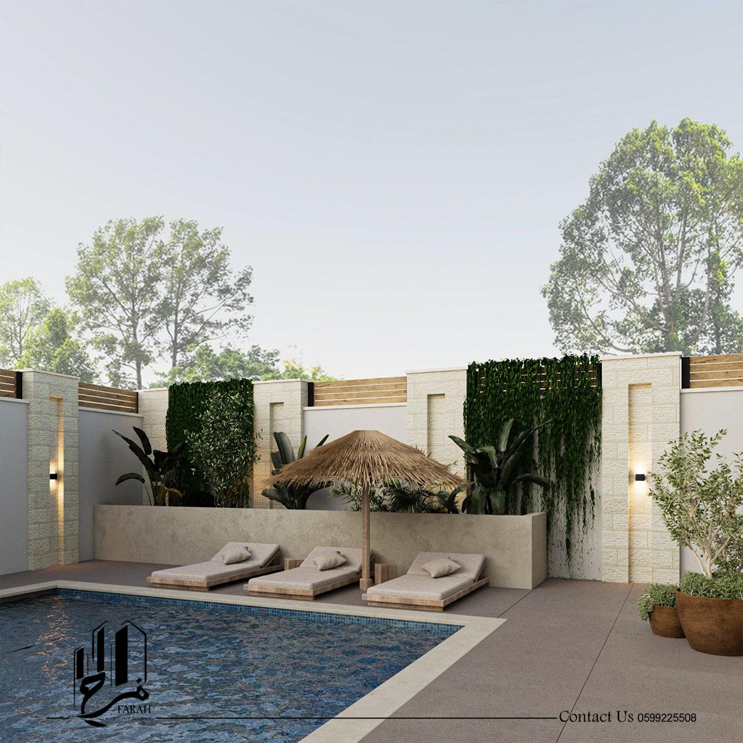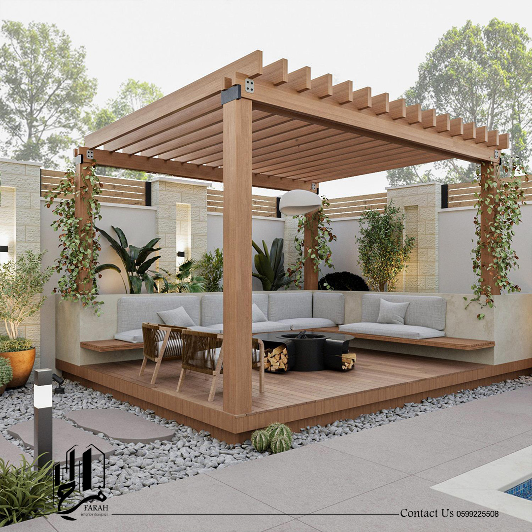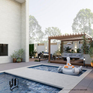 الحديقة الخارجية شكّلت امتدادًا أساسيًا للمساحة السكنية، حيث تم تصميمها لتكون منطقة تفاعلية متعددة الاستخدامات. تضم الحديقة منطقة شواء مخصّصة، جلسات خارجية مريحة، ومساحة جلوس بجانب حوض السباحة، ما يوفّر بيئة مثالية للاسترخاء والتجمعات العائلية والاجتماعية