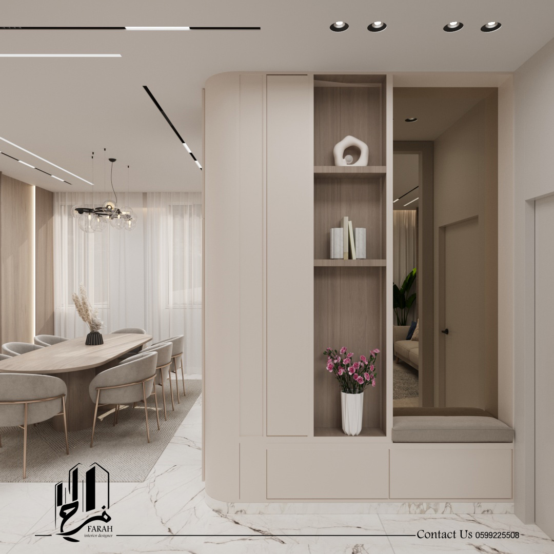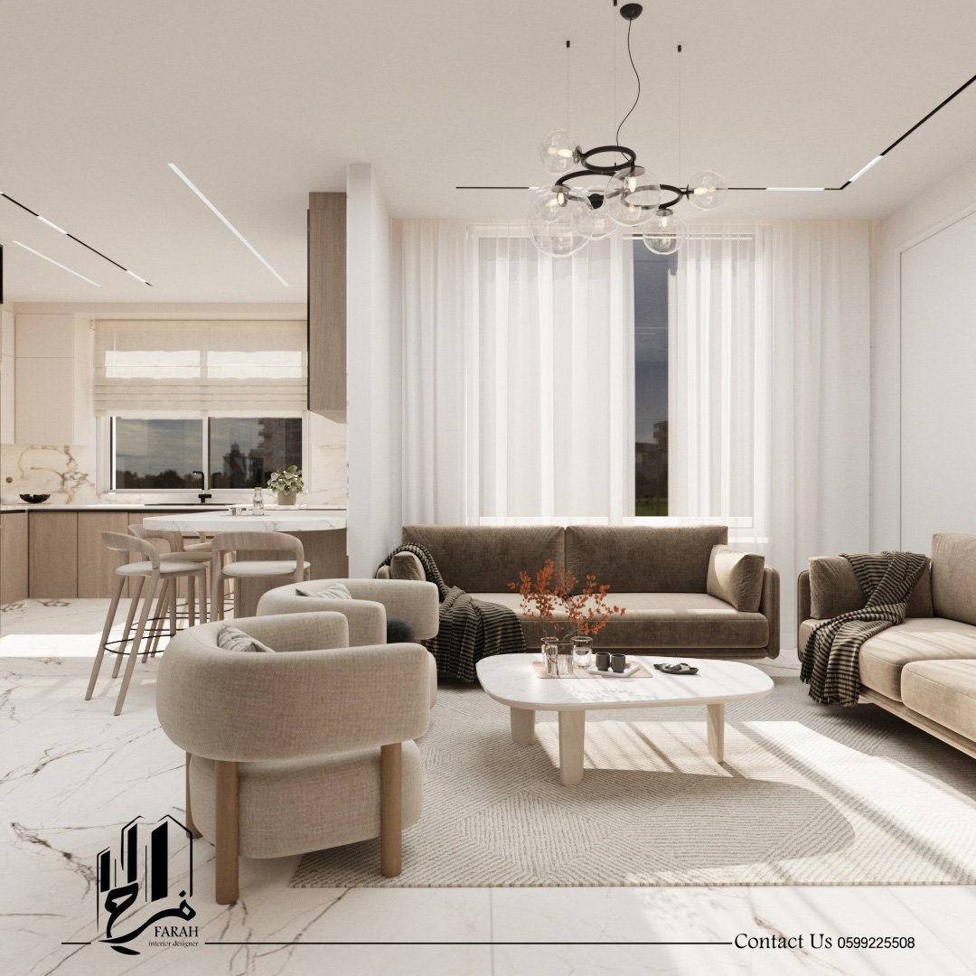 تم العمل على توزيع المساحات بعناية، مع التركيز على الانسيابية بين الفراغات واختيار ألوان وخامات تعزز الإحساس بالدفء والراحة