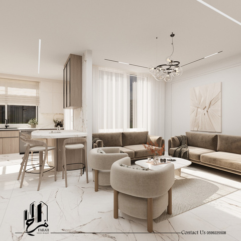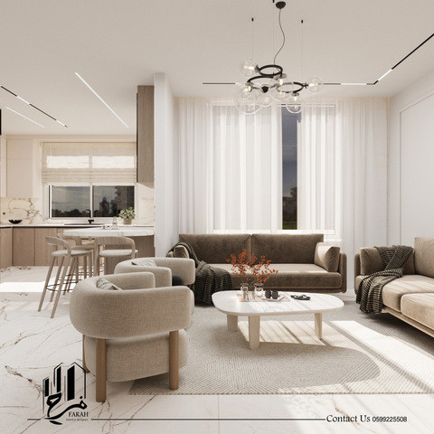 نهدف من خلال هذا العمل إلى خلق مساحة هادئة تتنفس بالضوء. تم دمج الخطوط الانسيابية مع خامات تعكس الفخامة الصامتة، لتعطي إحساساً بالسكينة والرفاهية في آن واحد.